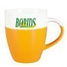 Dwukolorowy kubek o smukłej sylwetce i charakterystycznym uchwycie w kształcie zbliżonym do trójkąta. Pojemność: 300 mlKolory: żółty/biały, pomarańczowy/biały, zielony/biały, niebieski/biały, czarny/białyWysokość: 127 mm Średnica: 80 mm Materiał: ceramika