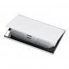 Komplet upominkowy w eleganckim pudełku, zawierający wizytownik, który pomieści około 20 standardowych wizytówek, oraz brelok. Logo możemy wygrawerować na wizytowniku i breloku lub też nanieść techniką tampodruku na opakowanie.Metoda znakowania: grawer, nadrukRozmiar: 65 x 94 x 15 mm (wizytownik), 61 x 27 x 6 mm (brelok), 138 x 118 x 22 mm (opakowanie)